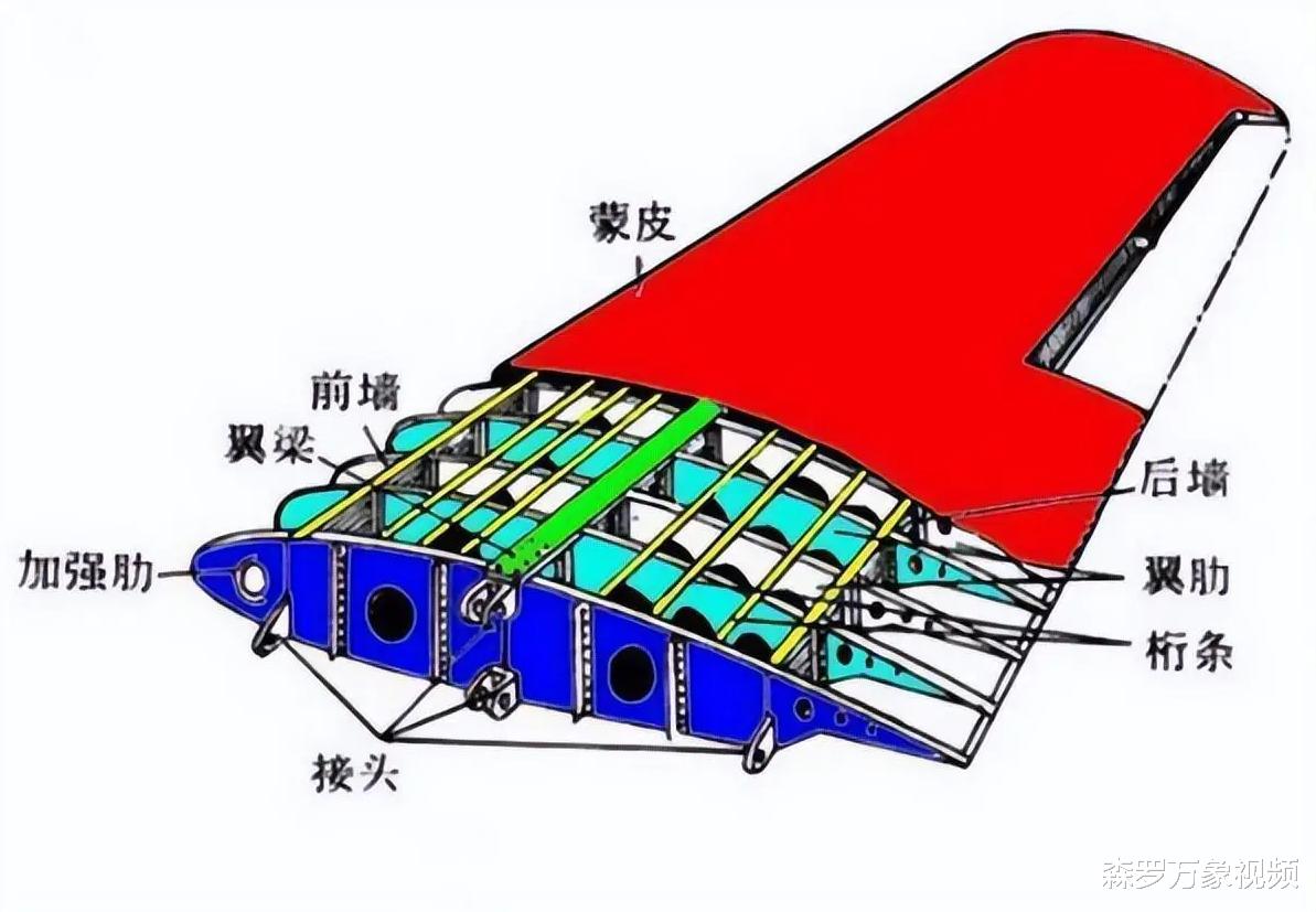 整个机翼内部结构和外部蒙皮紧密配合,共同构筑起机翼的强悍身躯。
