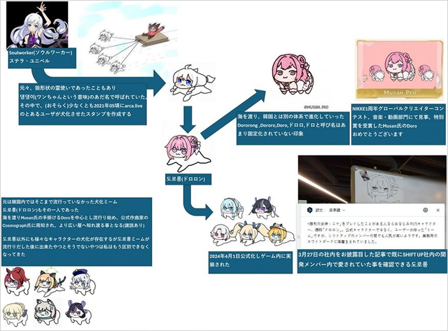 简而言之,这条粉狗是玩家抽卡沉船,心态崩溃的产物,韩国画师当时图一乐把它发到了论坛,结果不到两天,论坛已经被这条粉狗霸占。