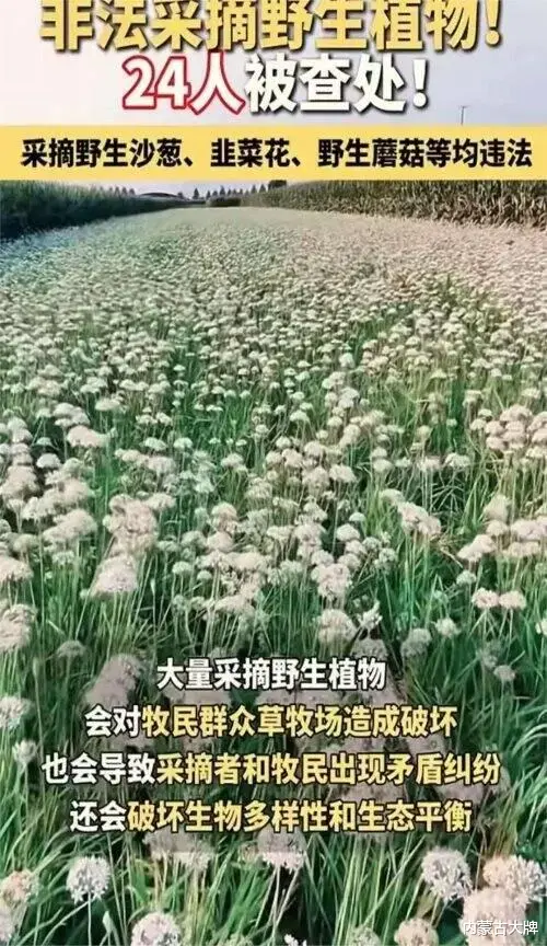 另外,内蒙古大牌想问一下:都说靠山吃山,靠水吃水。当地人采摘沙葱和野韭菜花的行为历史应该由来已久。面对这与相关法律法规的冲突,当地相关部门是否尽到了相关法律法规的宣传普及的责任和义务?