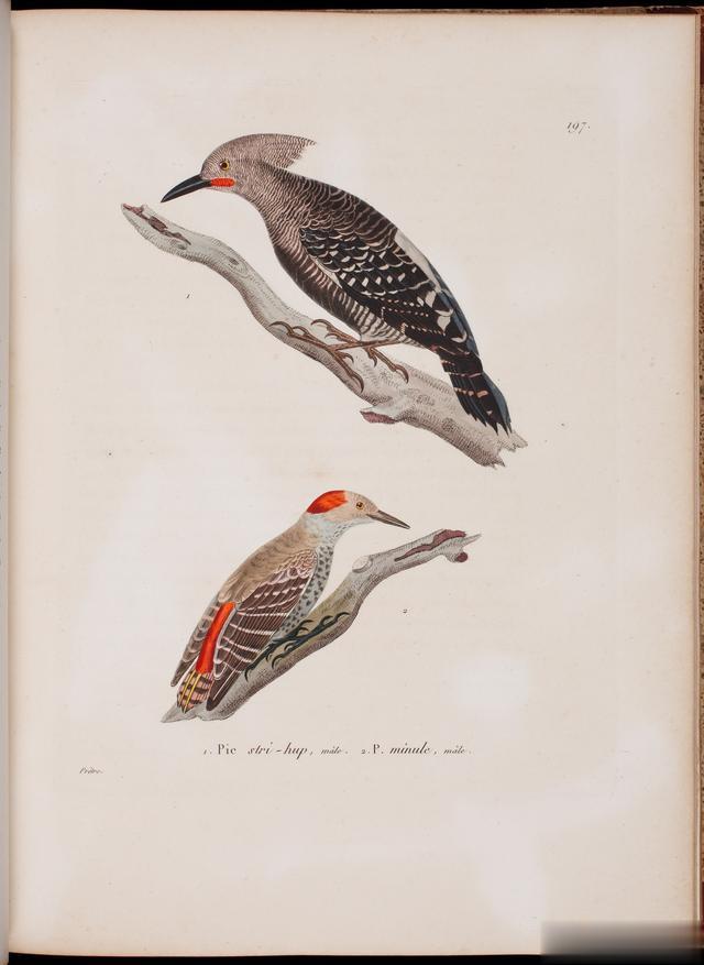 从历史的角度来看,这部法文版的《彩绘鸟类版画新集》在当时的学术界和艺术界引起了巨大的轰动。它不仅为鸟类学的研究提供了珍贵的图像资料,也对后来的艺术创作产生了深远的影响。