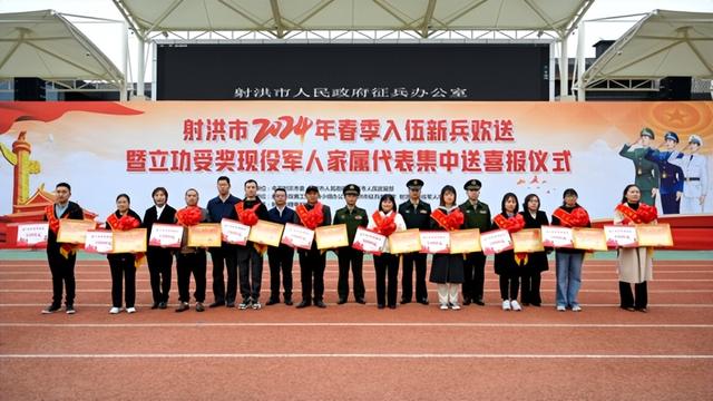 2024年3月15日,四川省射洪市举行2024年春季入伍新兵欢送暨立功受奖现役军人家属代表集中送喜报仪式