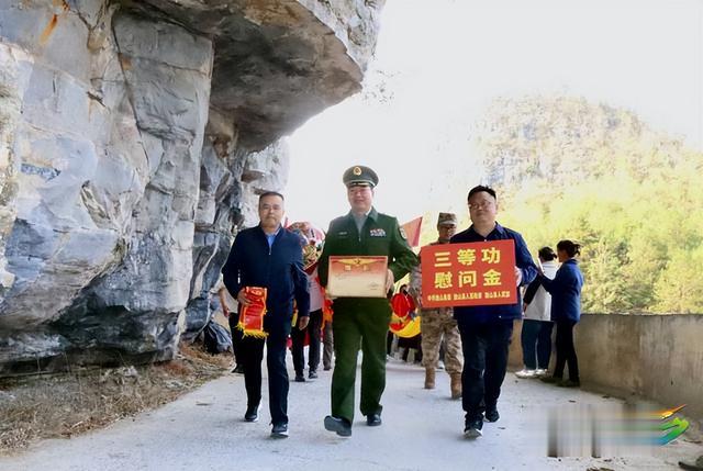 2024年11月14日,贵州省独山县人民武装部部长率队到麻尾镇坝望村,为荣立三等功的军人家属送上立功喜报