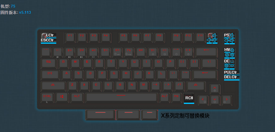 GK75套件的定位板上增加了一个分裂空格定位板模块,可以把一个空格键分裂成3个大小不同的小空格,这也是小呆虫的创新外观设计。