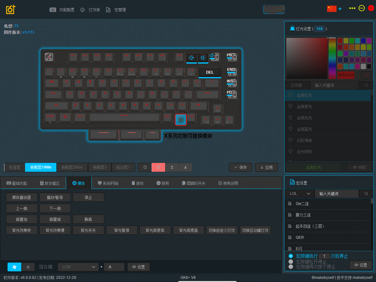 灯光效果在默认状态下也是非常丰富的,一共5种灯效,也可以自己去驱动更改不同的灯效,通过组合键FN+-键实现灯效切换,而每种灯效也可以切换互动模式,通过FN+=键实现。