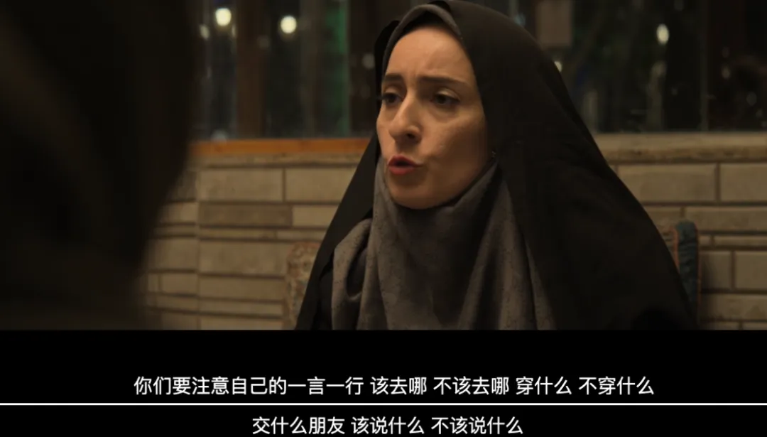 二、伊曼的妻子,与绝大多数伊朗妇女一样,全部精力花在照顾孩子,以及维护丈夫、家庭的体面上。她对于伊曼职位晋升的直观理解是,“很快能住上zf分的大房子了”,以及旁人羡慕的眼光。伊曼是这个家中唯一有职业和收入的人,他拥有着绝对的话语权,他的利益和家庭利益高度统一。只要和伊曼的利益有冲突,就是与整个家庭的利益有冲突。所以妻子一直在努力维持这个家的平衡稳定,压抑自己的情绪和疑惑。她认为只要丈夫和女儿多沟通,就能遏制女儿逐渐形成的与体制要求相背的价值观。