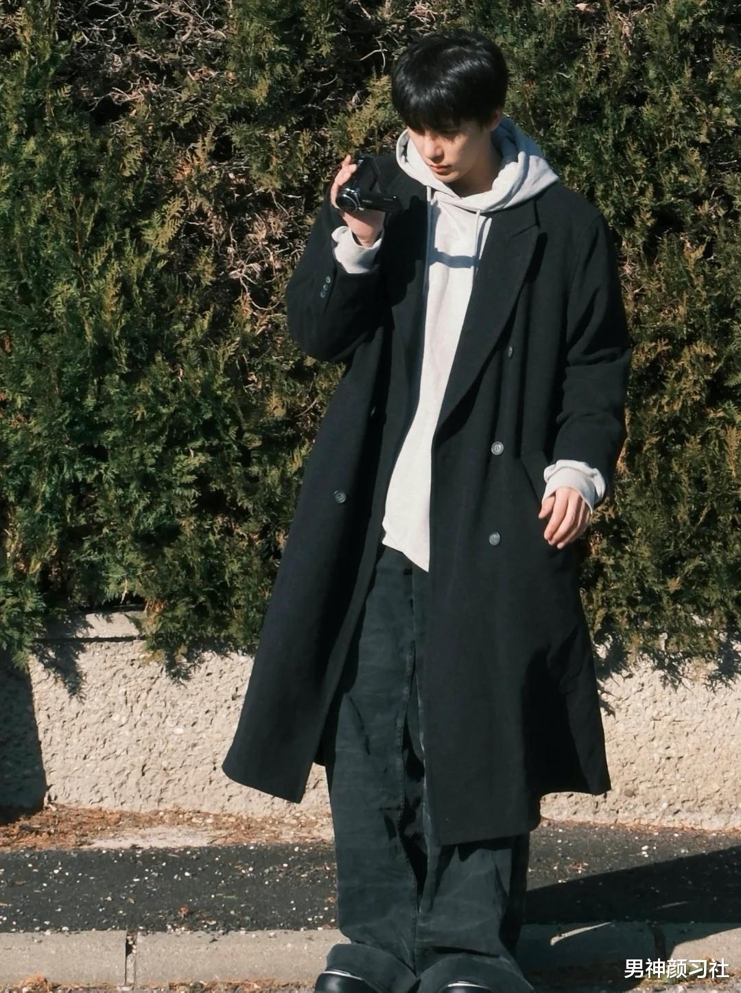 想要穿得比较简单的,就用深色系大衣搭配黑裤子。相对来说没有那么有挑战力。只要你的衣服是这种H型,腰线和肩膀都比较合身的,轻轻松松就能穿得好看。