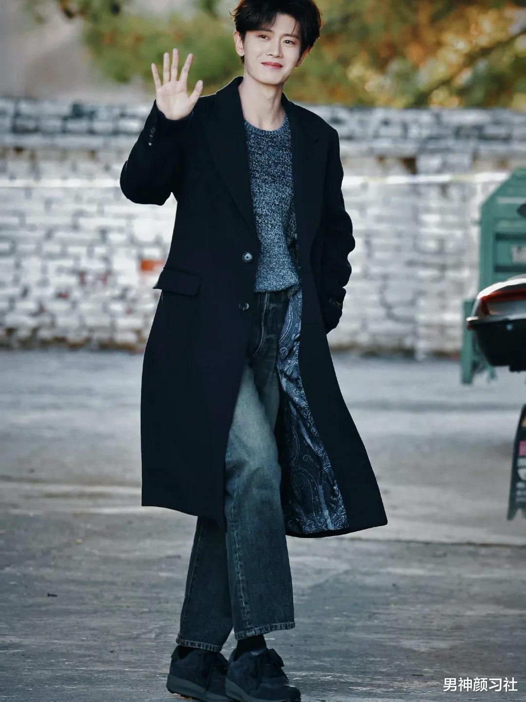 除了卫衣之外,毛衣也是冬天人气非常高的内搭。我比较推荐的是这种深色系的毛衣,不但穿上去后不容易脏,而且在搭配上也有更多的可能,还能够在视觉上起到一个显瘦的效果。任嘉伦这一套就还蛮典型的,尤其圆领毛衣的设计,能在视觉上延长脖子,看着更加显瘦。
