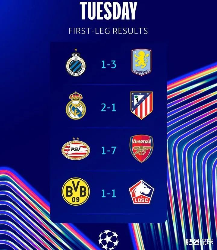 在马德里德比中,罗德里戈第4分钟进球帮助皇马取得梦幻开局,阿尔瓦雷斯超级弧线球扳平,下半场迪亚斯则打进第二球帮助皇马2:1赢球占得先机。不过,双方只有一球之差,次回合移师马竞主场依然存在很大变数。多特蒙德主场与里尔1:1握手言和,浪费了主场优势,下一场客战晋级形势不容乐观。