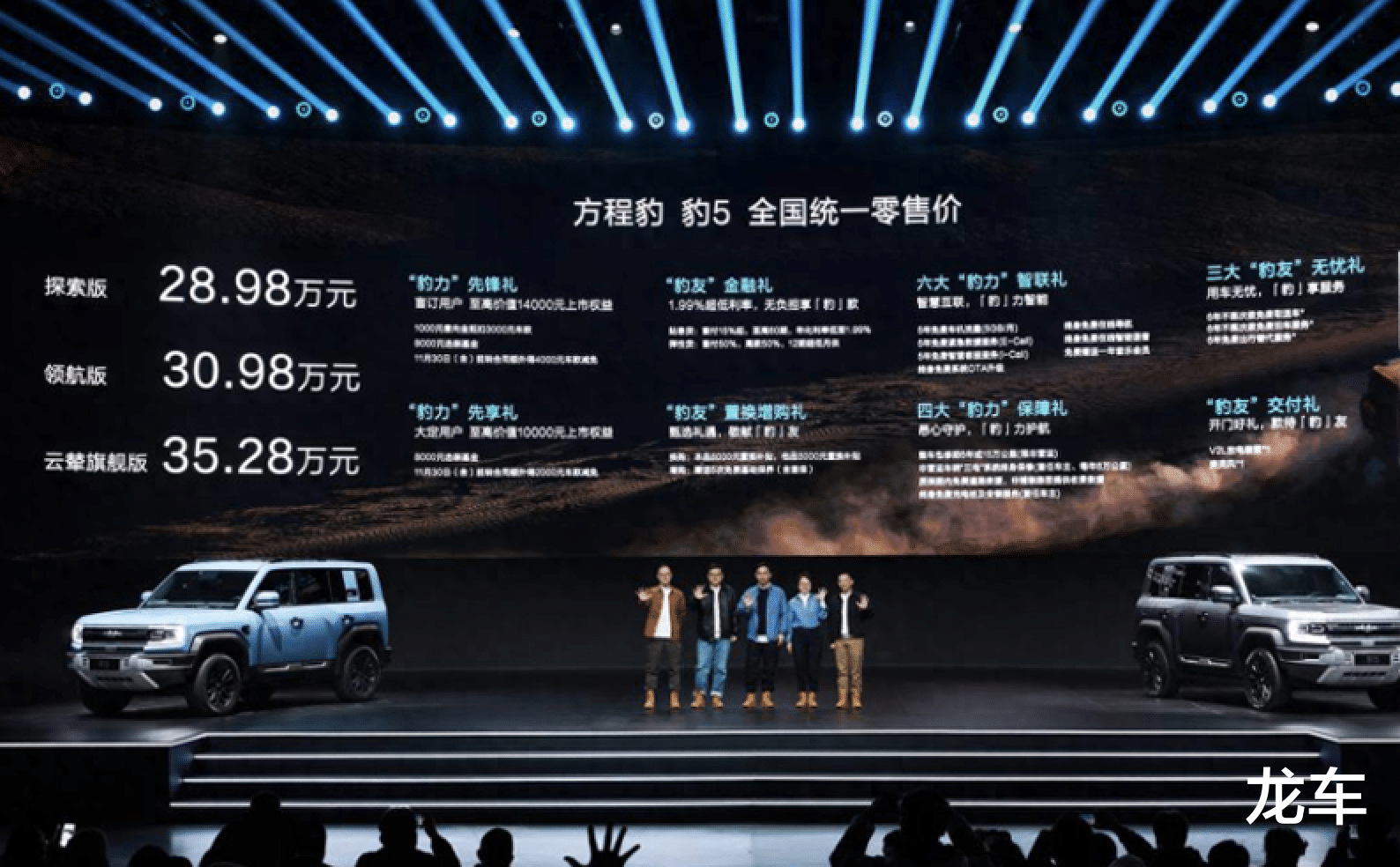 本次豹5的上市,将成为方程豹汽车在新能源个性化时代,带领用户求解汽车和生活个性化变革的开端。作为新能源硬派新物种,豹5也将与用户共同书写新能源用车生活的更多可能,叠加多重超值购车权益,让高端个性新能源生活触手可及。
