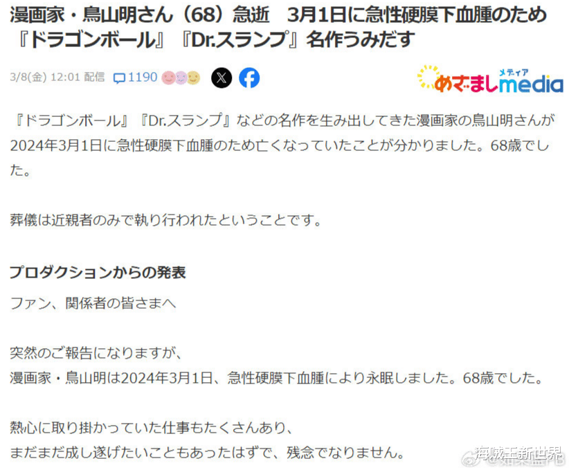 即便是最近也在重温龙珠,突然就看到这个讣告