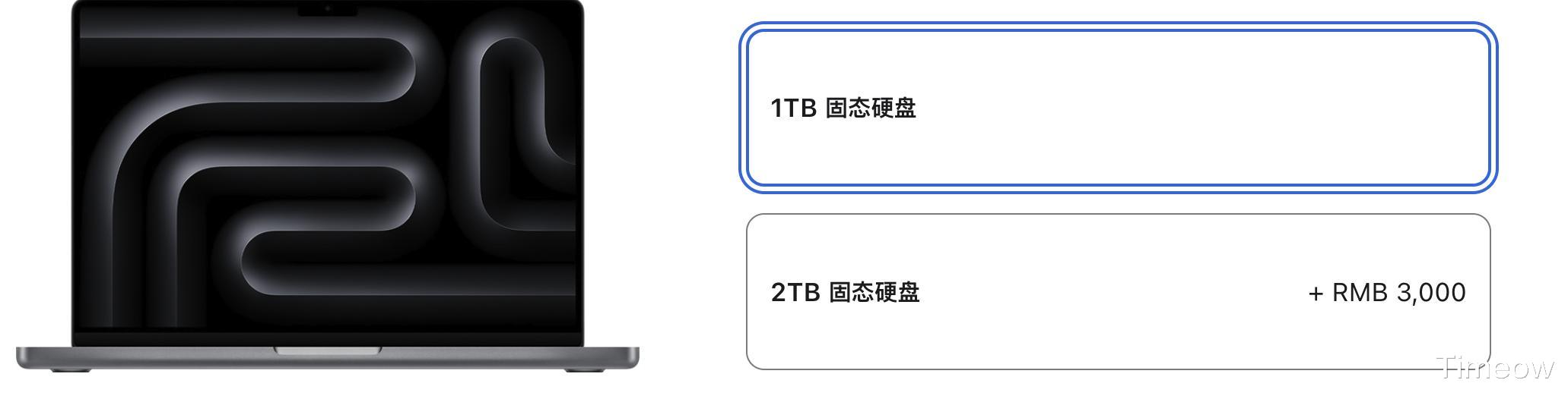 想要更多的容量,意味着要付出超多的钱。外面1TB的固态硬盘卖500,苹果直接要你命3000!