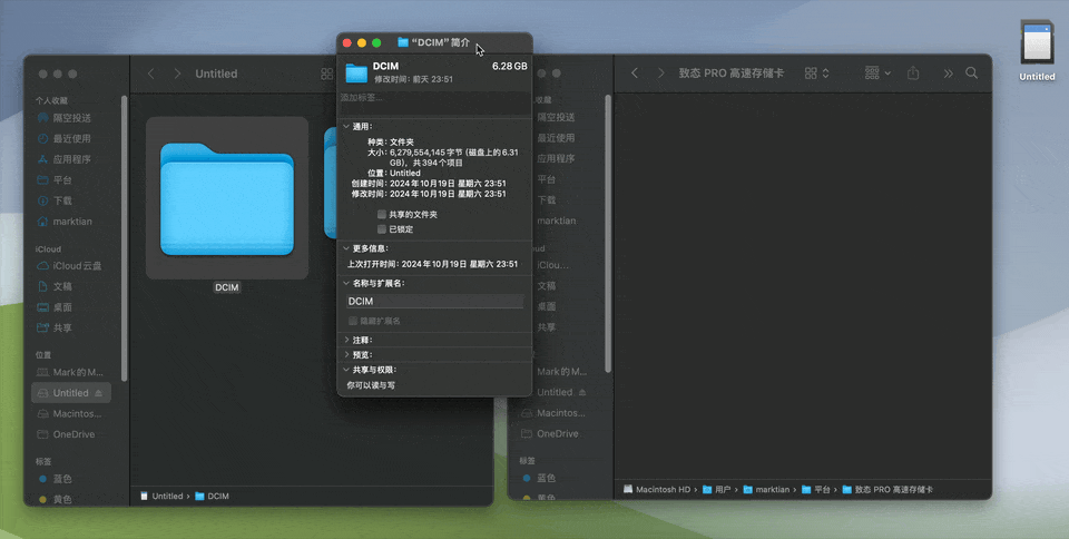 最后再来看看素材传输体验:拍摄完成后,导出素材时,稳定的传输速度很重要。以我的日常拍摄为例,往往都需要拍摄上百张的 RAW 格式照片,394 张照片,所占容量 6.28GB,来看看需要多长时间。