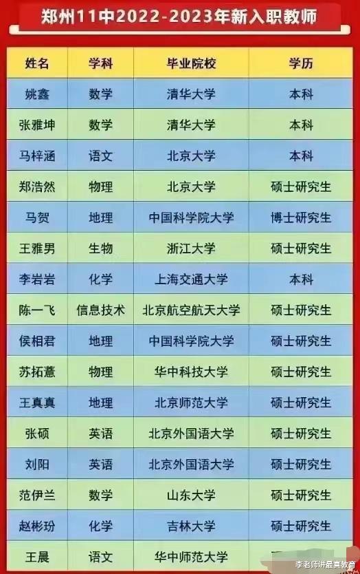看看最近郑州十一中的招聘教师我们可能也能明白。郑州十一中今年招聘的老师基本上是清一色的985名校生,其中还有清华北大的毕业生,乍一看,还以为是哪个科研单位呢?因为学历真的太高了。未来各校的招聘估计对学历的要求还会升级,照这样的趋势,以后想当个老师也不容易,没有名校的学历基本不要考虑,因为根本不可能。