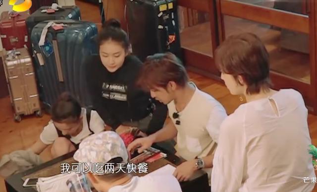陈柏霖先嘘了一声赖雨濛,说自己要先讲一下现在的情况:除了我们去超市,我们先定两天的食物。早中晚从,然后选择一天可以去吃个快餐还是什么的。结果赖雨濛这妹子又说:我可以吃两天快餐。