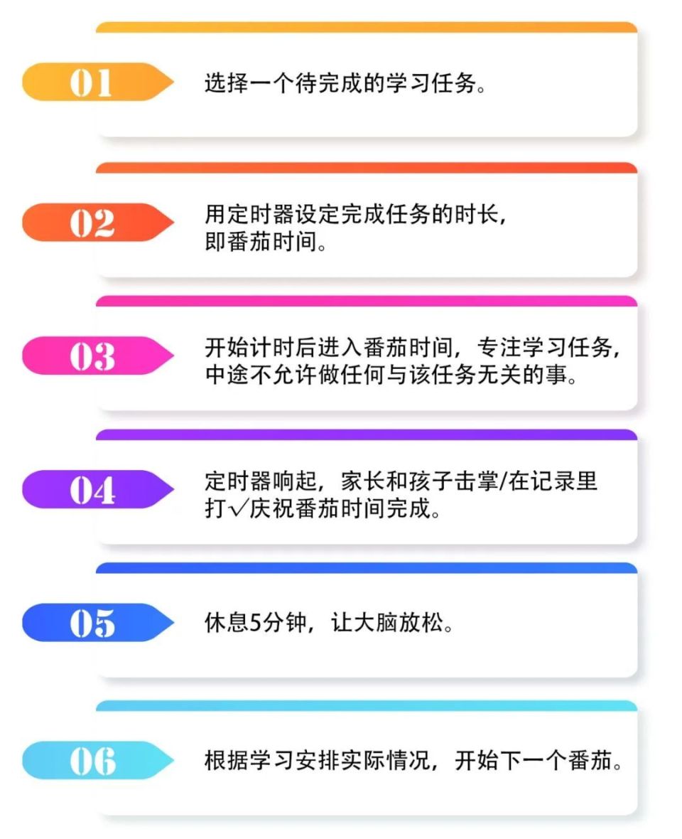 我觉得番茄工作法值得尝试,锻炼孩子在学习中管理好时间。番茄工作法,简单来说就是让孩子在设定的时间里只做1件事,重点在于鼓励孩子专时专用,在每个番茄时间里专心完成当前的任务。