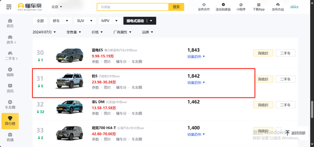 方程豹豹5目前共有4款车型在售,指导价区为23.98万-30.28万;经查询,在7月份共售出了1842辆,位居插电式混动车型销量排行榜第31名。接下来,我们就以入门级的探索版车型进行解说,看一看方程豹豹5表现如何?是否符合日常家用?