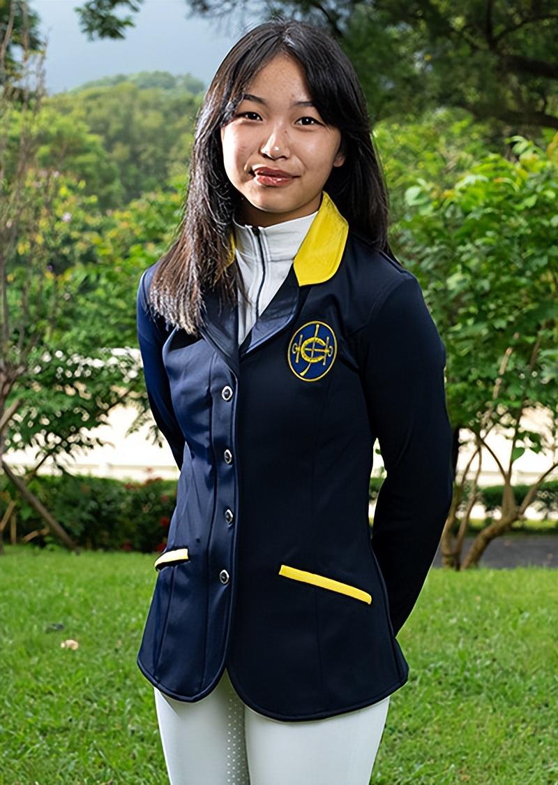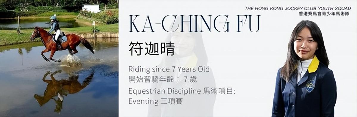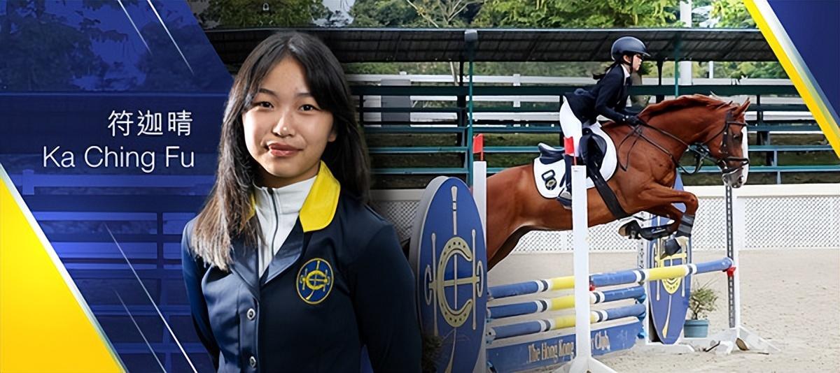 在网站的介绍所见,跟前港姐冠军妈妈俨如一个模子刻出来的符迦晴,穿上整齐马术队制服,骑在马上展示英姿,轻松做出高难度动作。根据资料介绍,符迦晴七岁开始练习骑术,专项为马术三项赛,去年10月在双鱼河马术中心三项赛(HKE80组别)获得第四名(中国香港),今年2月在同一项赛事获第七名(中国香港)。