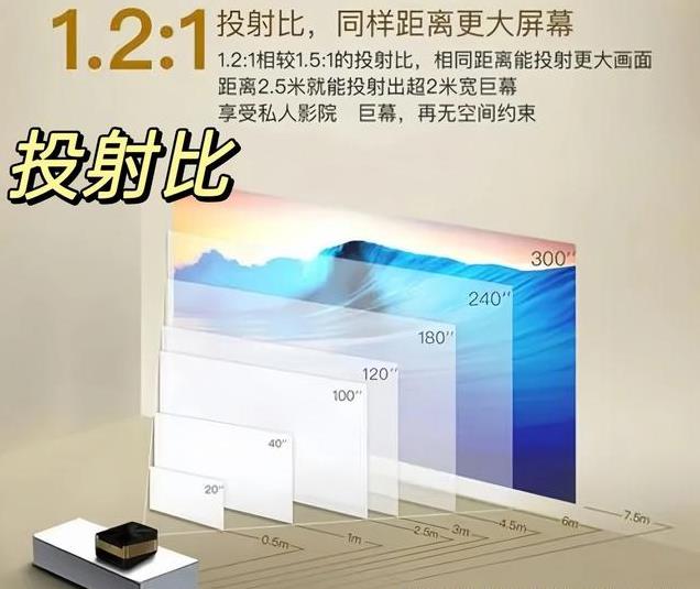 投射比应在1.2∶1到1.3∶1之间,这样才能保证画面的完整性