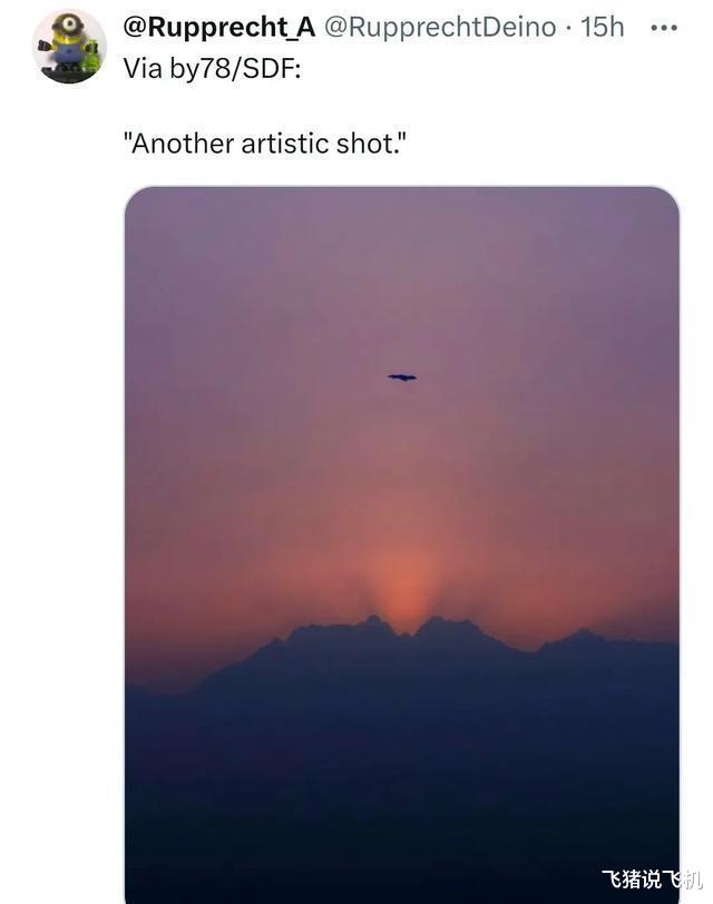 歼-36最近两次上天飞的时候,成都那边天气挺好,飞机也没飞得老高。所以,当地的网友们有幸抓拍到了晚霞伴着这第六代战机起飞的壮观场景。落日余晖下的歼-36,简直就像画里走出来的一样,美极了。成都的军事迷们,那真是占了地利的大便宜,说不定试飞的地点就是特意选的,让人感觉歼-36这两次试飞就像是故意要给大家看的。