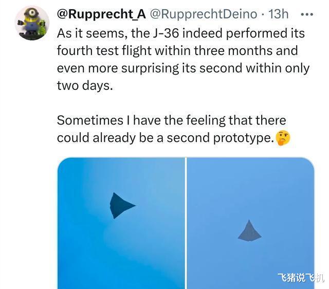 最近,德国的一位军事专家,鲁普雷希特,他发现了中国成飞歼-36战斗机的一个新动向。在3月17日第二次试飞之后,这架战机又在3月25日和26日这两天,连着飞了两次。鲁普雷希特琢磨着,歼-36这么频繁地试飞,很可能是因为他们已经有了第二架原型机。