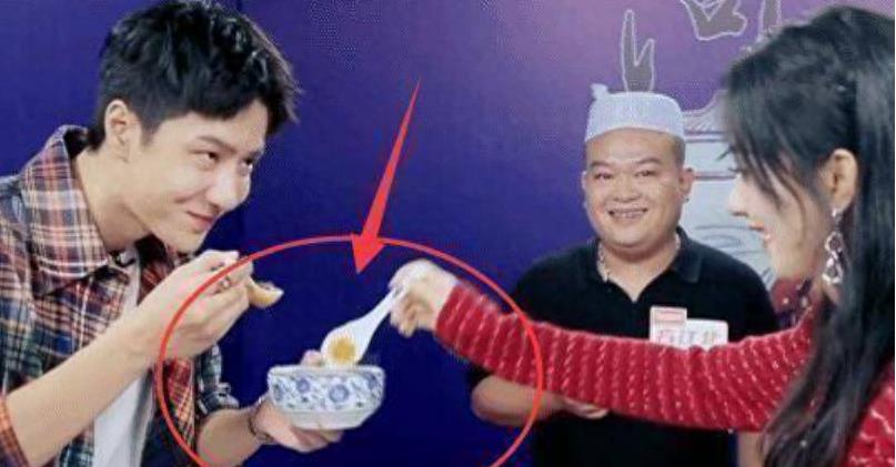 当时王一博手里端了一碗汤,嘴馋的赵丽颖也想尝个鲜。