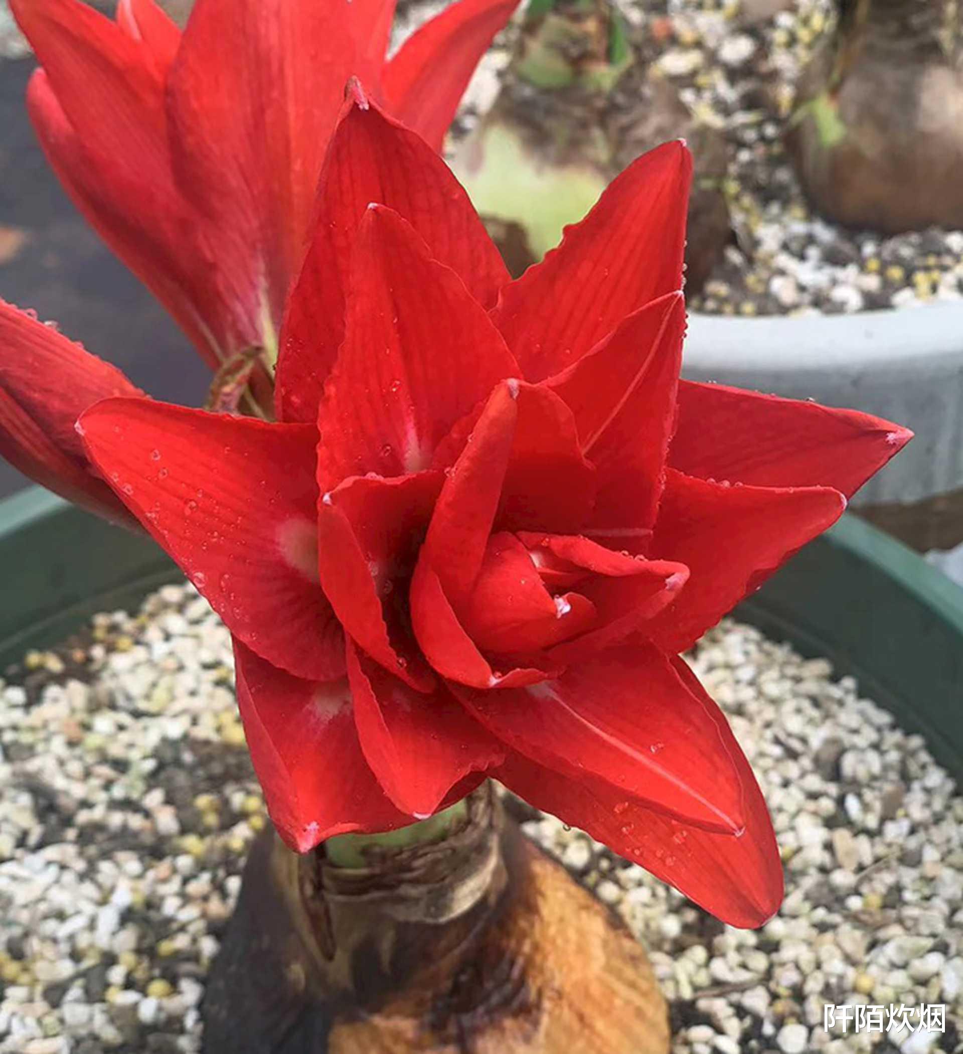 先来说说朱顶红在种植时候的一些注意事项。我在网上看到有网友分享自己的经历,他说他在华北的一个小院里种朱顶红。刚开始的时候,他按照网上的教程,给朱顶红的种球施了很多肥,结果种球差点没长好。其实啊,种朱顶红的时候,种球刚种下去不用施肥太多,大概种下后一个月左右,等种球适应了新环境,稍微有点小芽冒出来的时候,再施一点稀薄的液肥就够了。