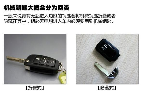 在这些智能钥匙中,一般都带有机械钥匙,它折叠或者隐藏在遥控器中。常规的折叠钥匙直接打开就可以找钥匙孔开门了。如果是隐藏的,使用时需要将它拔出来。