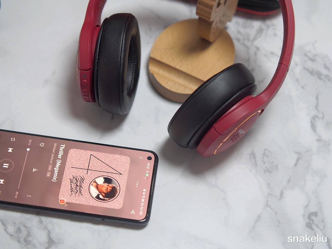 这款耳机大红色的配色,很适合这样喜庆日子里佩戴。耳机顶部耳梁部印有HECATE logo,G2BT是一款蓝牙5.2低功耗低延迟的无线耳机,耳机上有三颗控制按键,分别控制播放、暂停、游戏模式和音乐模式切换,还有控制音量增减,可以盲操,上手很简单。