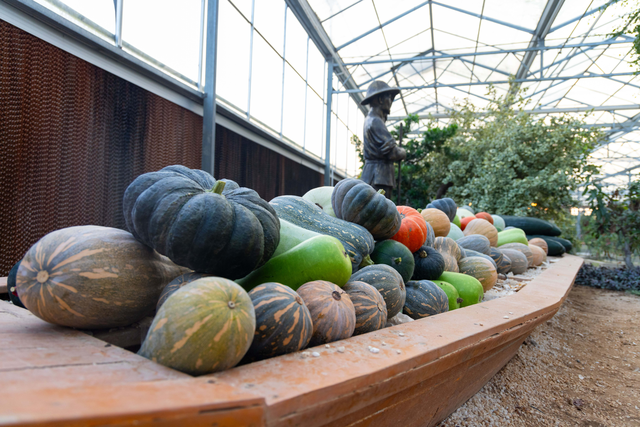 走进种植展示区,三米高的茄子树上,汇集着多品种高产量的茄科“全家宝”,既有比成人手臂还粗长的茄子,也有圆乎乎的“胖娃娃”,展示了我国蔬菜类农业专家创新团队研发培育的新成果。另外,还有叶色绚烂如花的羽衣甘蓝、经太空“旅行”后选育的黑皮冬瓜、五颜六色的彩色辣椒、灯笼状的南瓜、各式各样的番茄……种植展示区内,航天品种、薯类、玉米、优新品种、花卉和岭南中草药科普等种类独具特色。