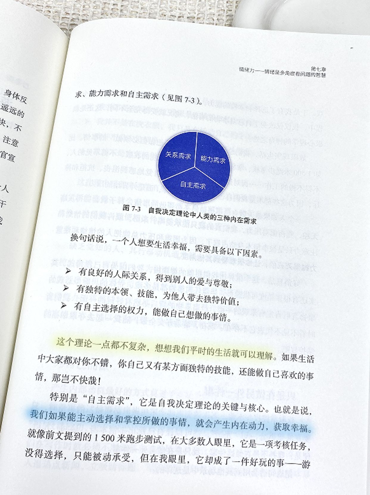 "现代积极心理学中,最引人瞩目的莫过于爱德华·德西和理查德·瑞恩的“自我决定理论”了。它指出人类有三种天生的内在需求:关系需求、能力需求和自主需求。