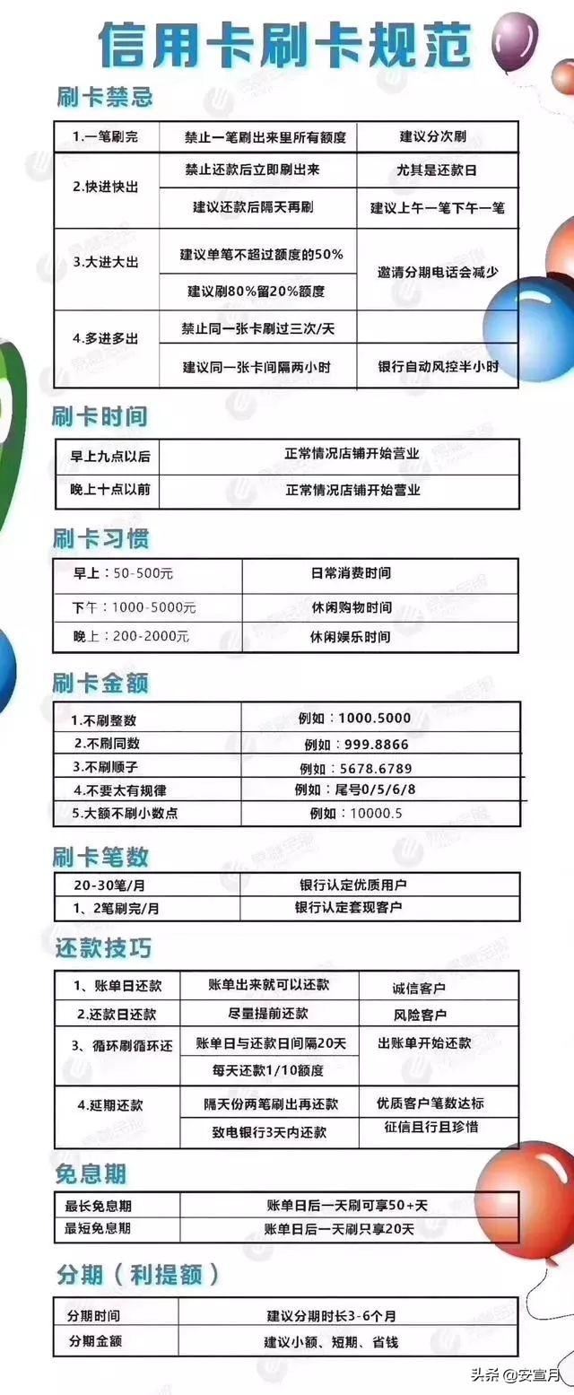 早晨、上午主刷:超市,便利店,副食店,快餐店,烟酒商店等等尽量模仿正常的消费习惯。金额一般控制在300内双免交易。