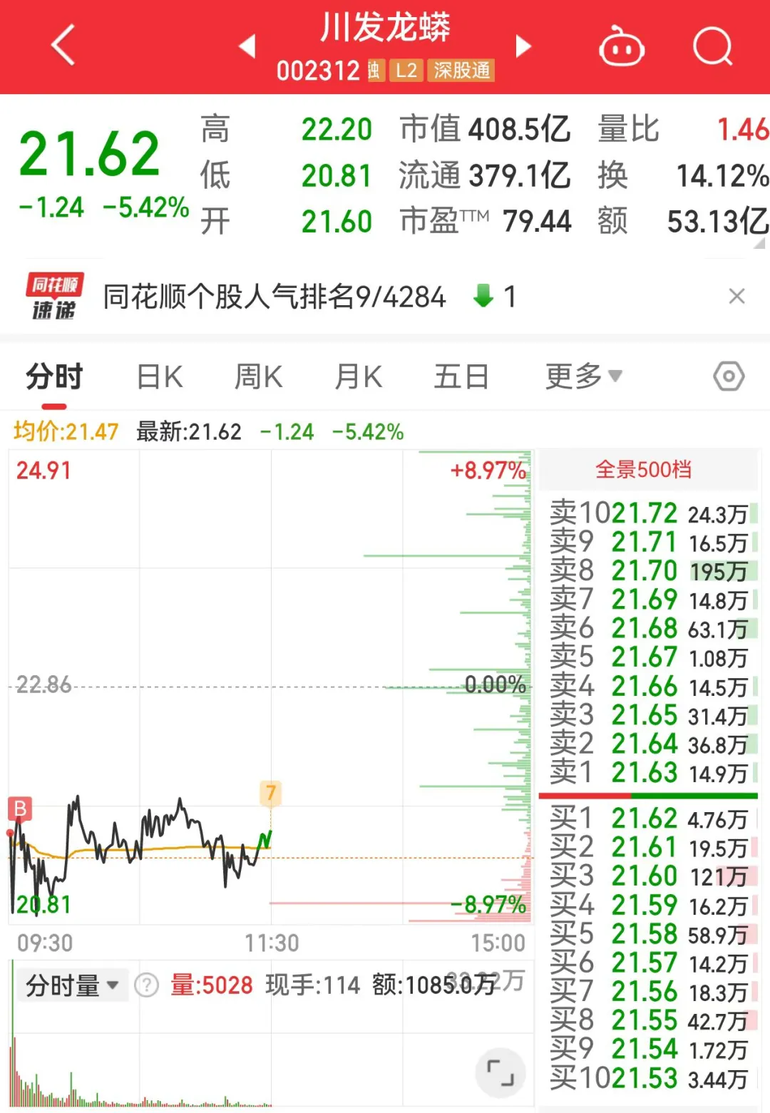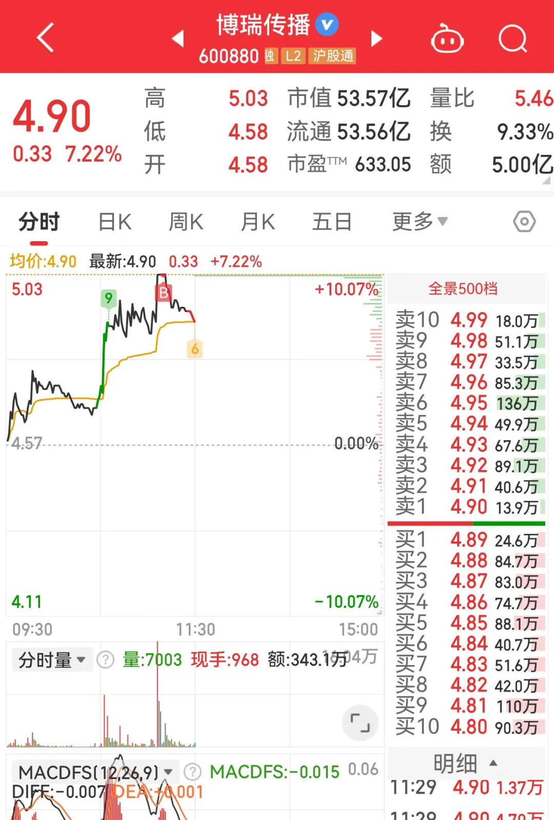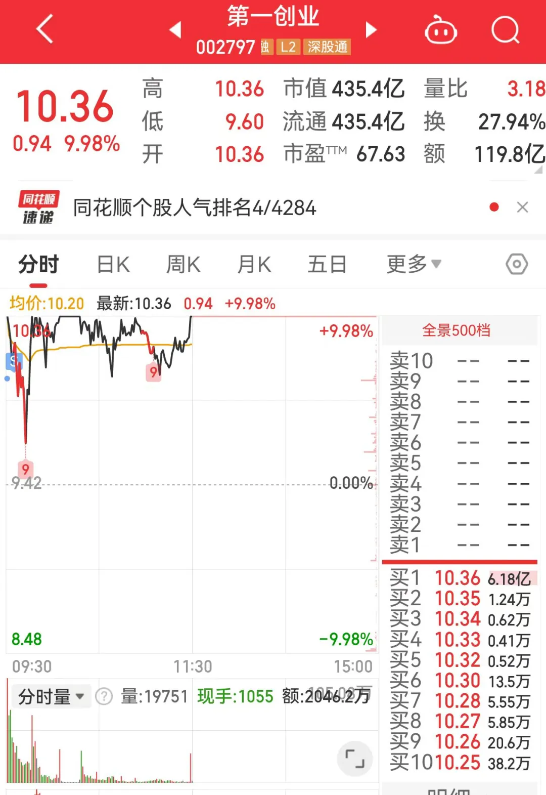 5、老百姓昨天尾盘拿的,目前暂时没动,下午看看有没有机会去封个板;
