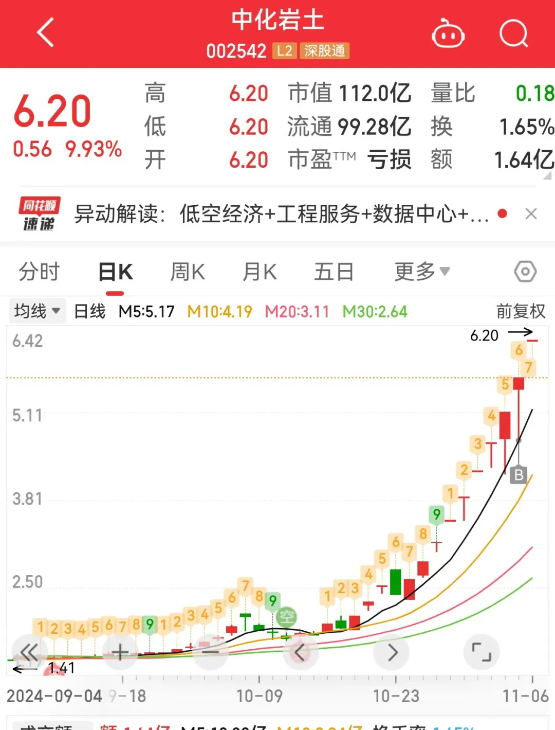 1、中化岩土躺赢一字板;