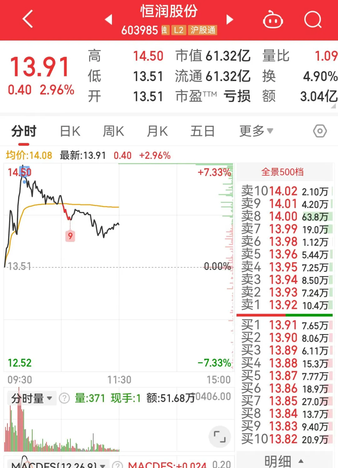 8、恒润股份,拿了好几天了,早上冲高6个点出了,这个票还小亏3个多点止损;