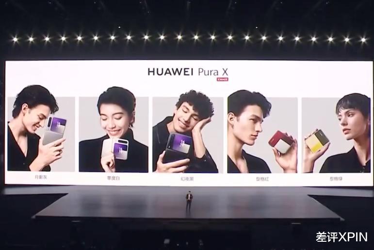 但不管怎么样,在发布会上看, Pura X 这小东西还挺别致的。这回总共有型格红,型格绿,月影灰,零度白,幻夜黑, 5 款配色。不管是纯色,还是撞色版本托尼感觉都挺别致的。