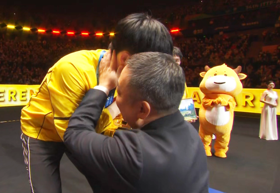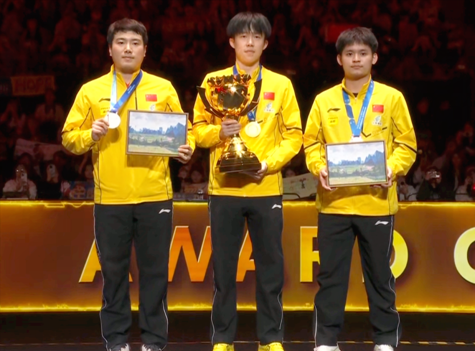 女单冠军王曼昱在领奖时显得尤为吃力。她在赛后采访时直言:“奖杯比我想象的要重得多。”尽管志愿者提前告知她奖杯沉重,但实际举起时依然让她感到意外。这也让不少人调侃,这确实是一个“有分量的”冠军。王曼昱的淡定表现与她的实力相得益彰,展现了国乒女将的风采。