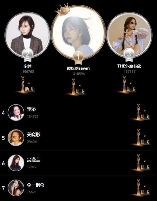 前脚谭松韵还以超过宋茜10万多票的成绩位列第一;