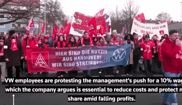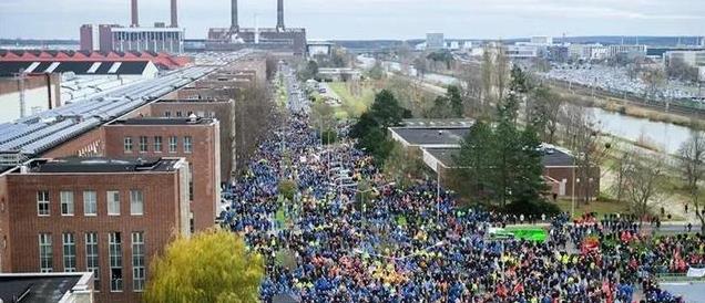 具体而言,九家大众汽车工厂的工人们纷纷汇聚一堂,共同表达他们的诉求与不满。工人们高举着各式各样的标语,口哨声、呐喊声交织在一起,整个罢工现场弥漫着紧张而热烈的氛围。他们所抗议的内容,并非仅仅局限于减薪这一单一议题,更多的是对管理层决策的不满以及对自身合法权益的坚决捍卫。工人们坚信,管理层的决策严重忽视了他们的利益,将他们置于了一个极不公平的境地。