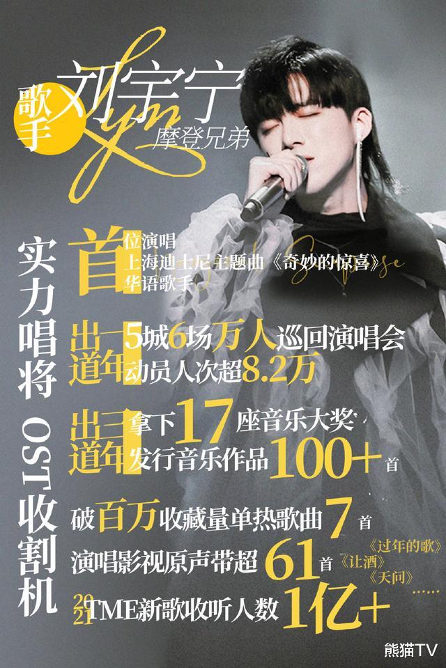 尽管刘宇宁粉丝列出了他的实绩,但没有说服力。华晨宇和周深的实绩太牛了:华晨宇是唯一一个在鸟巢开过个人演唱会的90后歌手,而且一连开了两场。华晨宇的单曲《好想爱这个世界啊》,销售额高达6882万,仅次于周杰伦、肖战、蔡徐坤。
