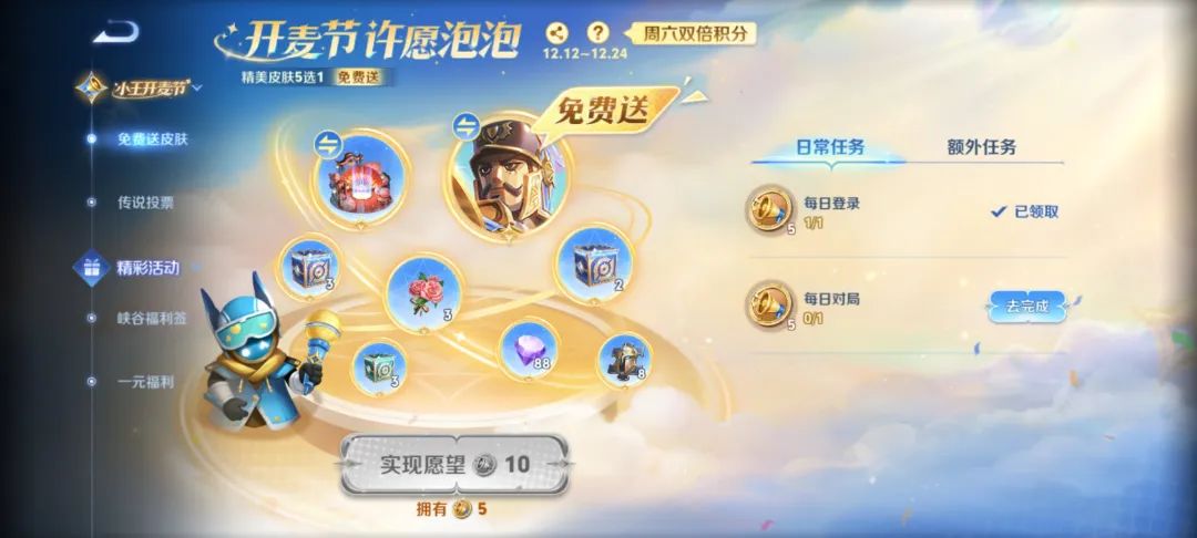 还有就是,许愿泡泡活动开启,可以白嫖一款皮肤,大家记得去参与下!好了,本期的内容就到这里,更多王者荣耀爆料请关注我,我们下期再见!