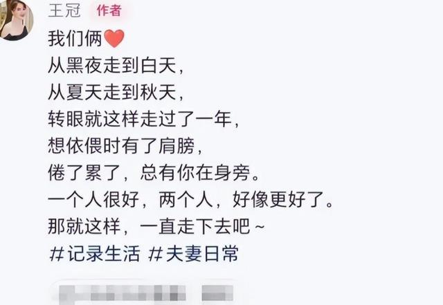也是王冠第一次在平台上晒出照片和信息,原来人家早就已经名花有主了。