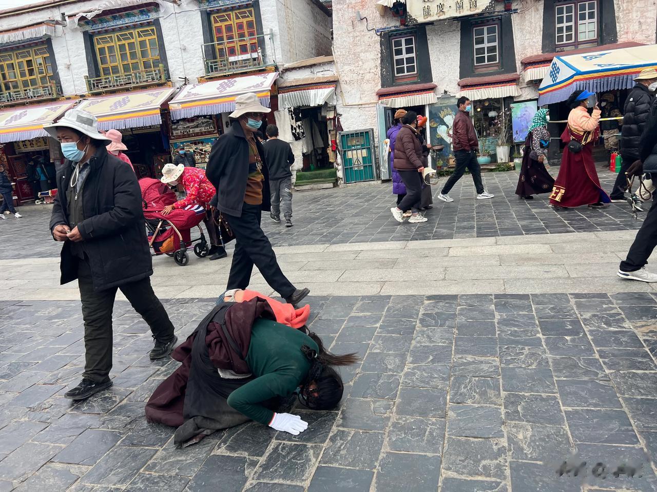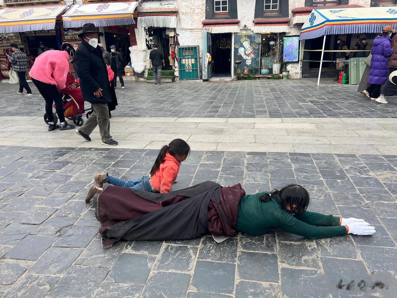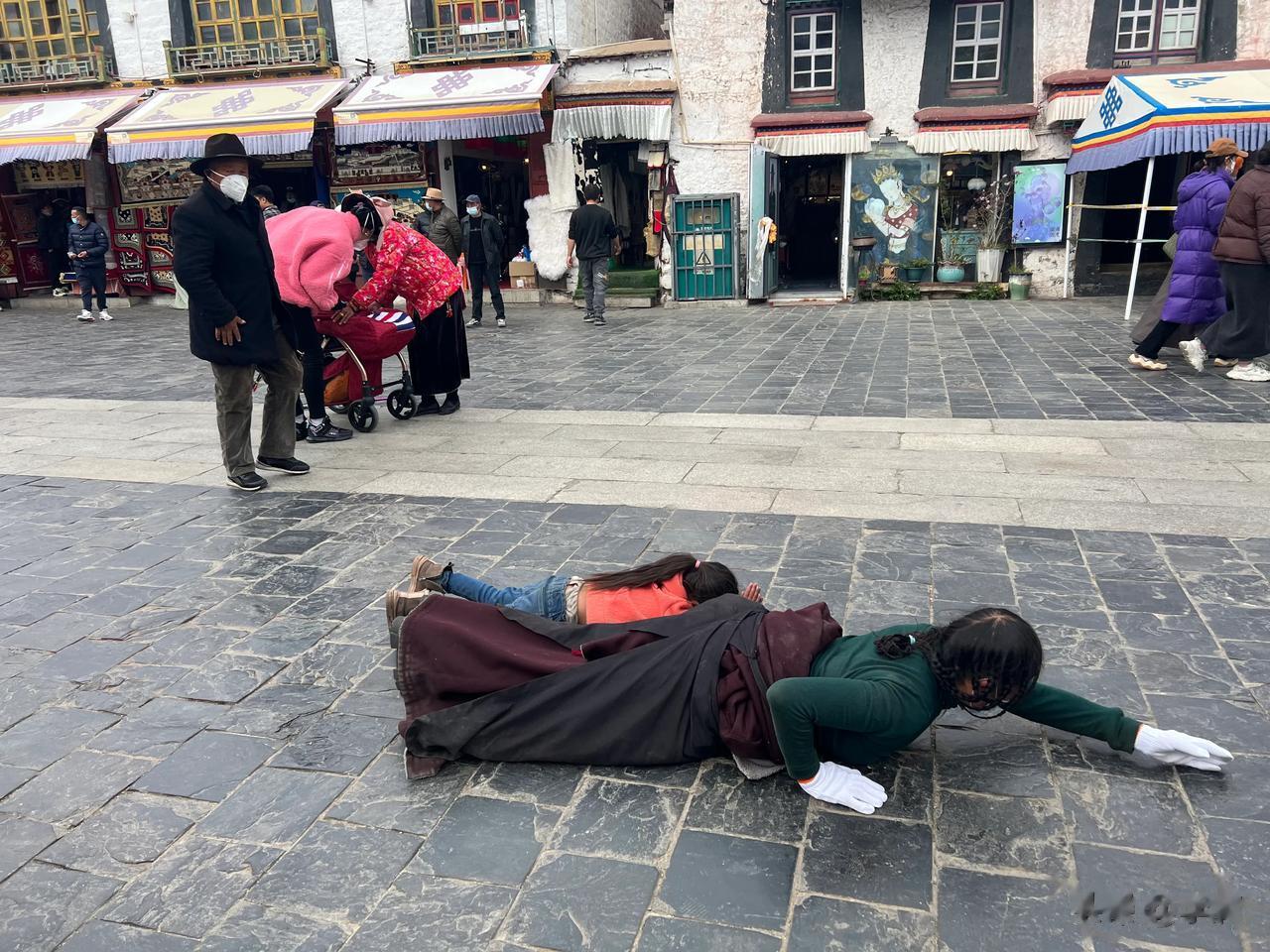 【入藏日志002】入藏前,我在想:沧桑巨变的西藏会不会和以前不一样了。我担忧的变化是藏民的“信仰”,但昨天在罗布林卡、大昭寺附近转了一圈后,我完全没有了这种担忧。 这些年,经济的飞速发展的确让雪域高原大变样了,但它们丝毫没有改变藏民的信仰,这点,是藏民们用神情、用无数磕长头的动作告诉我的。 我在大昭寺前看到无数磕长头的藏民,他们最远的匍匐数千公里,全家同行。这一路,少则数月,多则三年两载,风餐露宿,青稞面用水搅拌,捏成面团就是三餐。他们比我之前在影视剧里看到的更加让我震撼:有的衣衫褴褛,前额印着因磕长头而起的老茧;有的缺胳膊少腿,一晃一晃地坚持磕头向前;有的带着年幼的孩子一跪一拜,孩子肚皮、手掌上全是磨出的茧…… 当游客给他们布施时,他们无一例外地、看也不看直接把零钱放进藏服里,脸上的神情似乎全不是在接受施舍,而是他们在向游客施舍。也是到了这里我才知道,藏民认为接受游客的布施就是给他们积德行善的机会,是一种超高的馈赠。了解到这一层,我更加对这些磕长头朝圣者肃然起敬了。 我看到了很多朝圣的孩子,他们穿着和汉族孩子一样的服饰,但不需看他们的容颜,只需看一眼他们的眼神,我们就能轻易知道:他们是有信仰的藏民,因为他们的眼神太坚毅、澄澈。我确定多少年后,当他们和我们一样年岁,他们依旧会以匍匐的姿势继续他们的朝圣之路。 很多人以为藏民的信仰就是单纯的佛教,却并不知道更深层的内容。我以前也不大懂,但这次看了他们之后我顿悟了:他们的信仰是用身躯、体力、五体前行,不计其数的默念,祷告,去换取万物生灵的“扎西——秀”。他们认为这是最高的积德行善,唯有如此才可换来自己和众生来世的福报。 理解到了这里,我才知道自己有多渺小。以前,我以为五体投地磕长头就是表达谦卑、表达臣服、表达恭敬,可一遍一遍看他们磕长头以后,我才悟明白:那一次次的弯腰低头到极致,是谦卑恭敬,更是爱和感恩。 最后,附上我拍摄的母女结伴磕长头的照片。另外,如果可以,请所有入藏的朋友带少许零钱,为朝圣的藏民,也为我们自己。