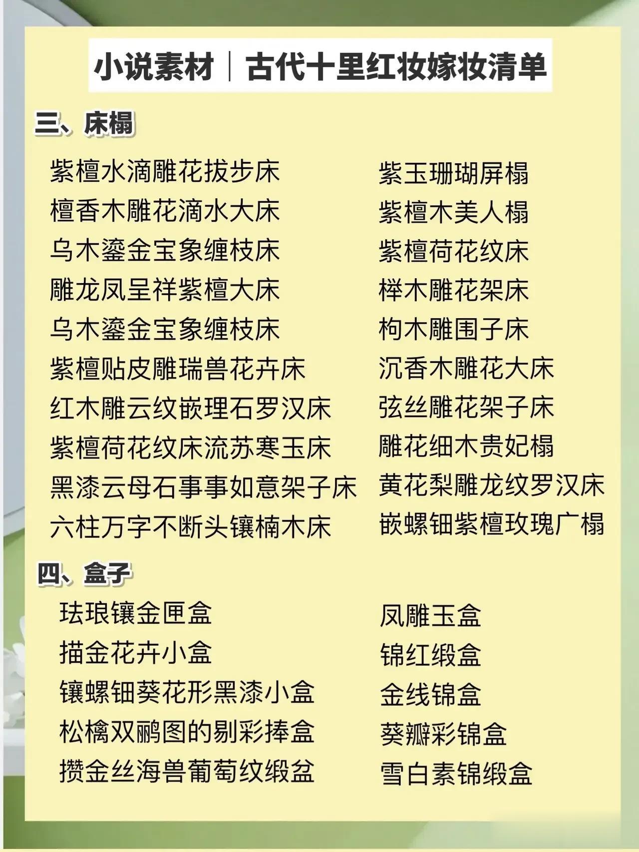 写小说还是要整理一些素材的。 就比如一个古代嫁人的片段,如果你写细一些,一万字以上完全没有问题。 看看这些素材,有点红楼梦的味道在里面,写起来也是相当的顺手。