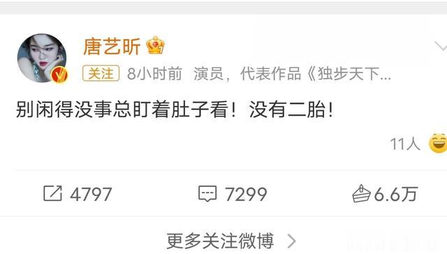 一直盯着人家肚子看少关注私生活,多看作品。不得不说这姐收到消息的速度挺快的,麻利干脆辟谣了否认没有二胎,也是非常的霸气怼回去了