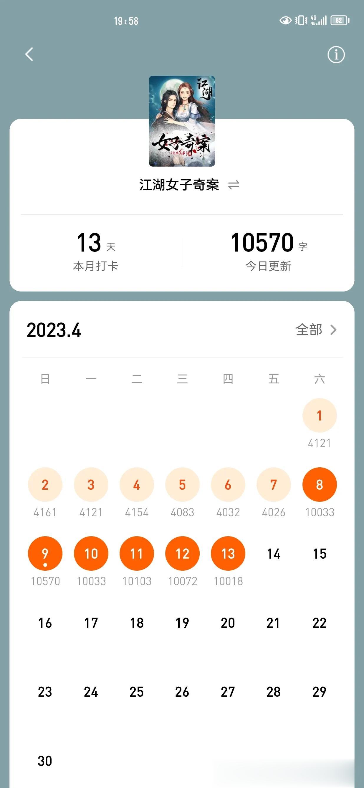 《江湖女子奇案》这本书,我已经写了20万字了。 验证期几天成绩都不好,完全就是扑街了。 听一位前辈说赶紧写二十万字。 书测还有救。 于是我就连续七天更新一万字。 已经到了二十万字。 然后改了一个名字《苏先生,小女子找你报案了》。 不知道能不能救,如果还救不了,那我只能切了。 写了两本书都扑街了,暂时不写了。