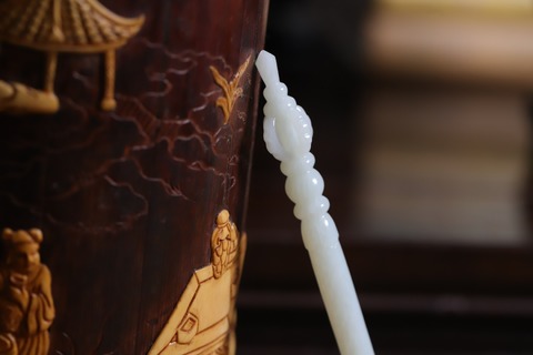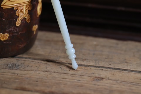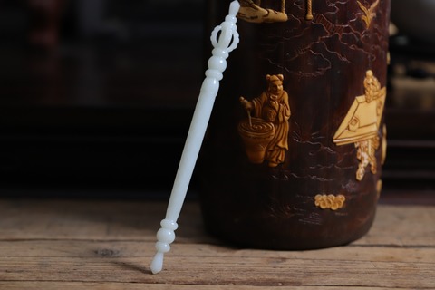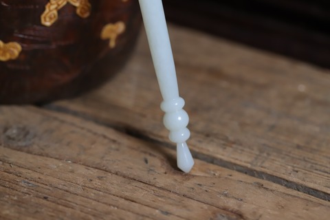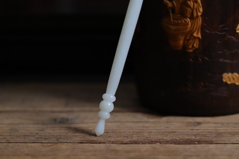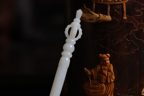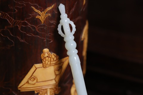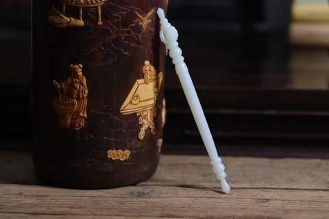 白玉法器禅杖 ————————— 一级白玉,长15 公分 重21克 是一件小精品,整料所雕,玉质通透细腻,品相完美。