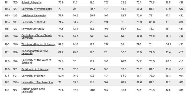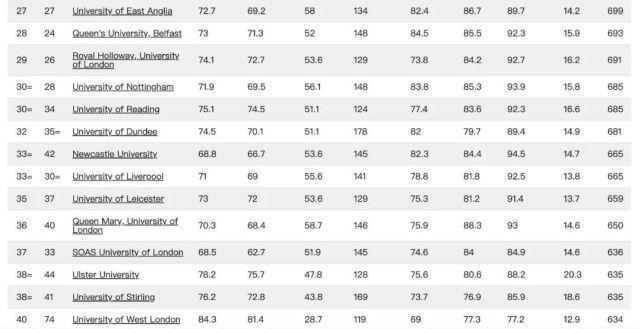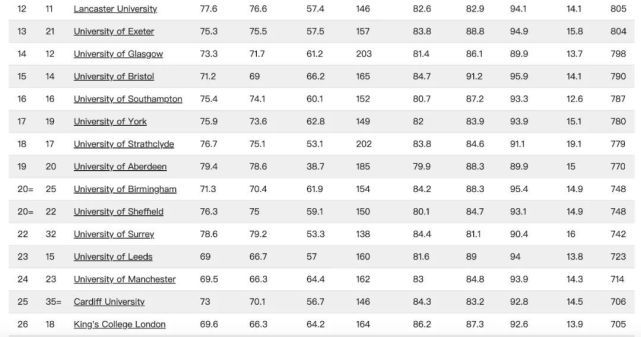 相比QS世界大学综合排名,《泰晤士报》发布的英国大学排名能够更反映出在英国本地人心目中各高校的排名情况和教学质量。