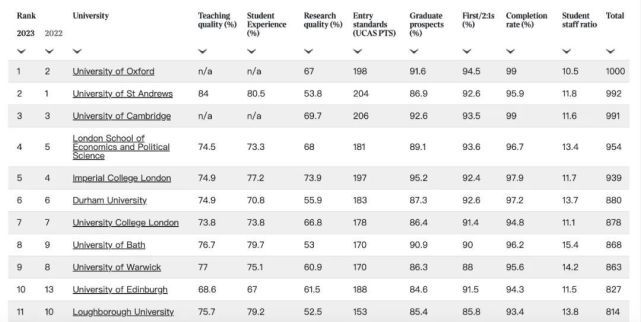 近日,英国杂志The Times&The Sunday Times(《泰晤士报》与《星期日泰晤士报》)发布了2023年英国大学最新排名(Good University Guide 2023)!