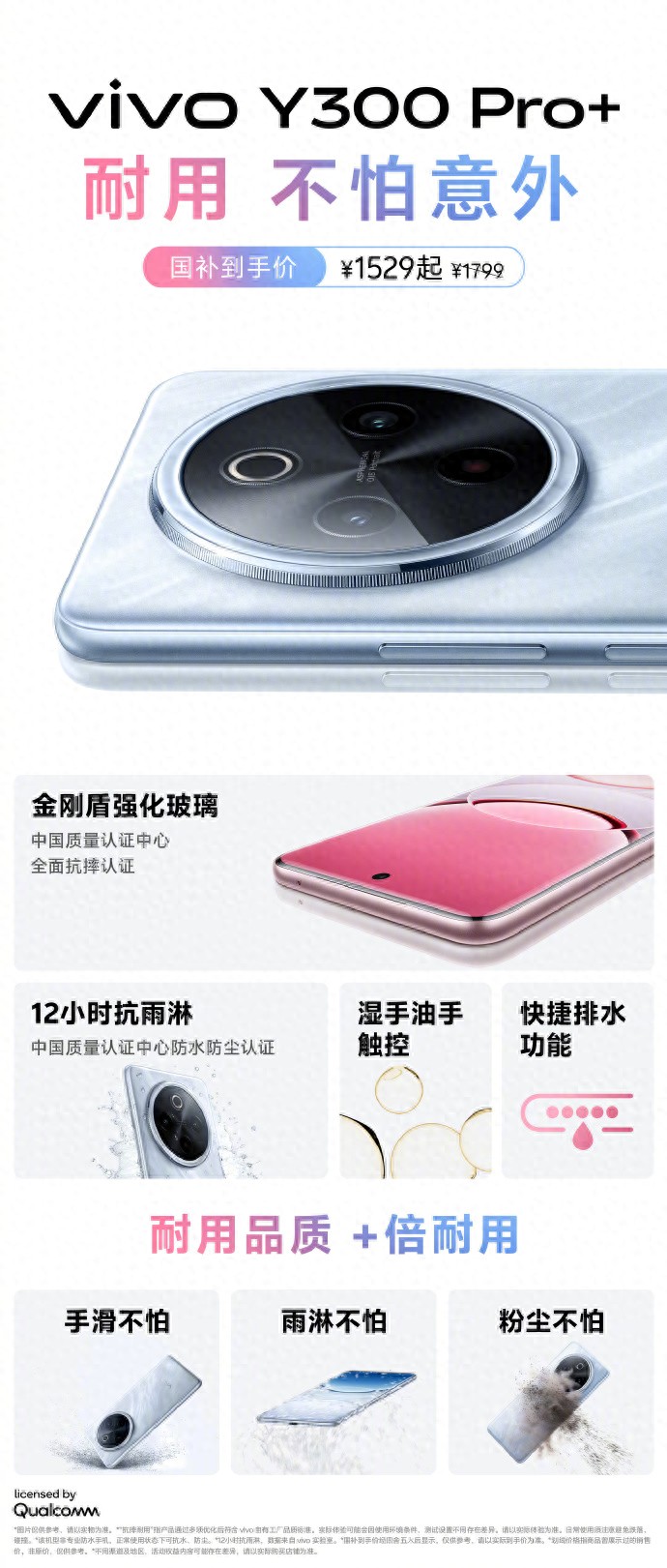 性能上,高通第三代骁龙7s处理器为vivo Y300 Pro+提供强劲动力,轻松驾驭多任务和重度应用。冰原散热系统以高效热量管理保证运行稳定性,避免高温干扰。12GB运行内存结合“内存融合”技术,让多应用并行毫无压力。vivo Y300 Pro+以其独特外观、长效续航和卓越耐用性,成为注重品质用户的优选。