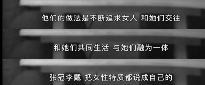 他们还会把女性情感丰富、独立自主等品德,移花接木到自己身上,然后把不理性、低价值扔给女性角色。